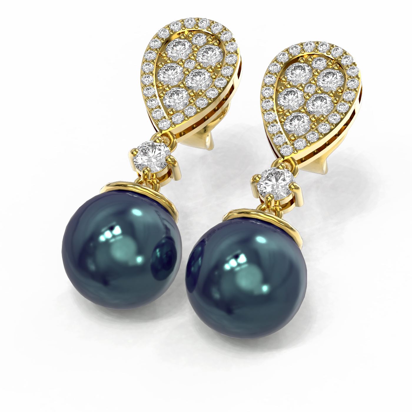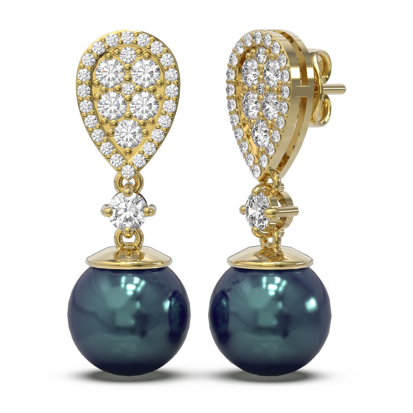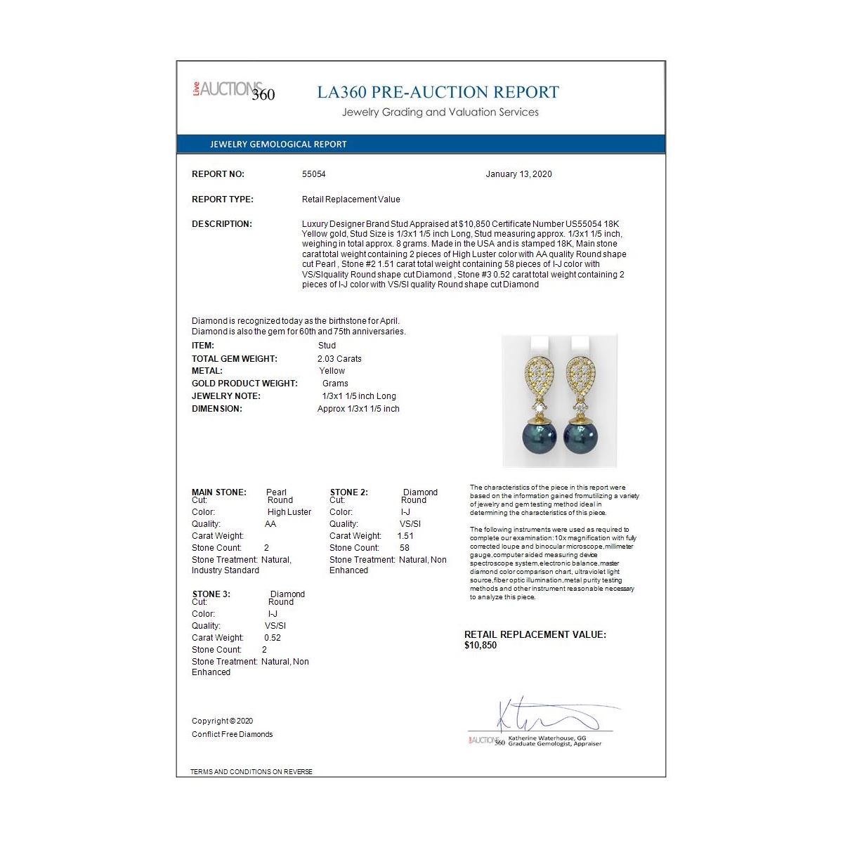REF-219X5A - SKU: 55054 ---- 2.03 ctw Diamond & Pearl Earrings 18K Yellow Gold