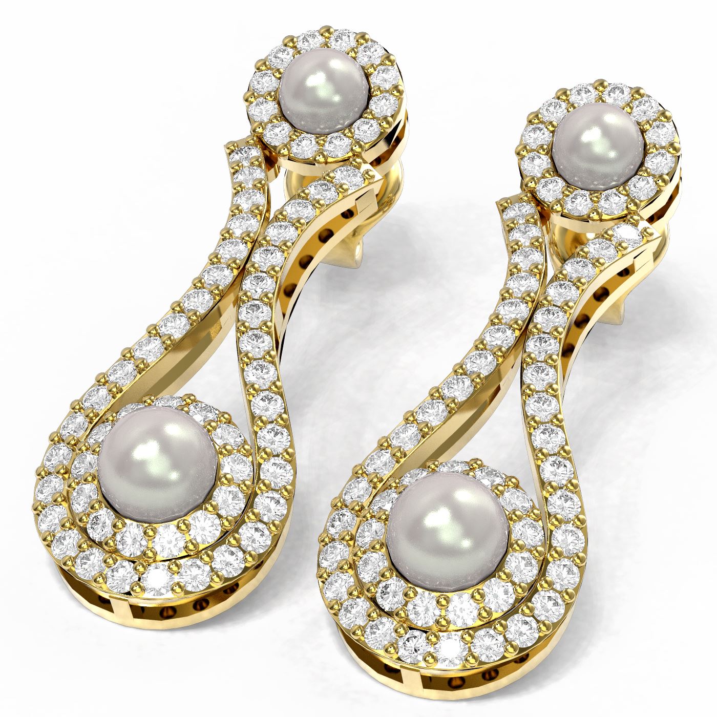 SKU: 61306 ---- 2.03 ctw Diamond & Pearl Earrings 18K Yellow Gold