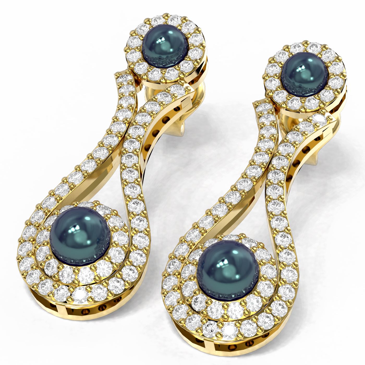 SKU: 61303 ---- 2.03 ctw Diamond & Pearl Earrings 18K Yellow Gold