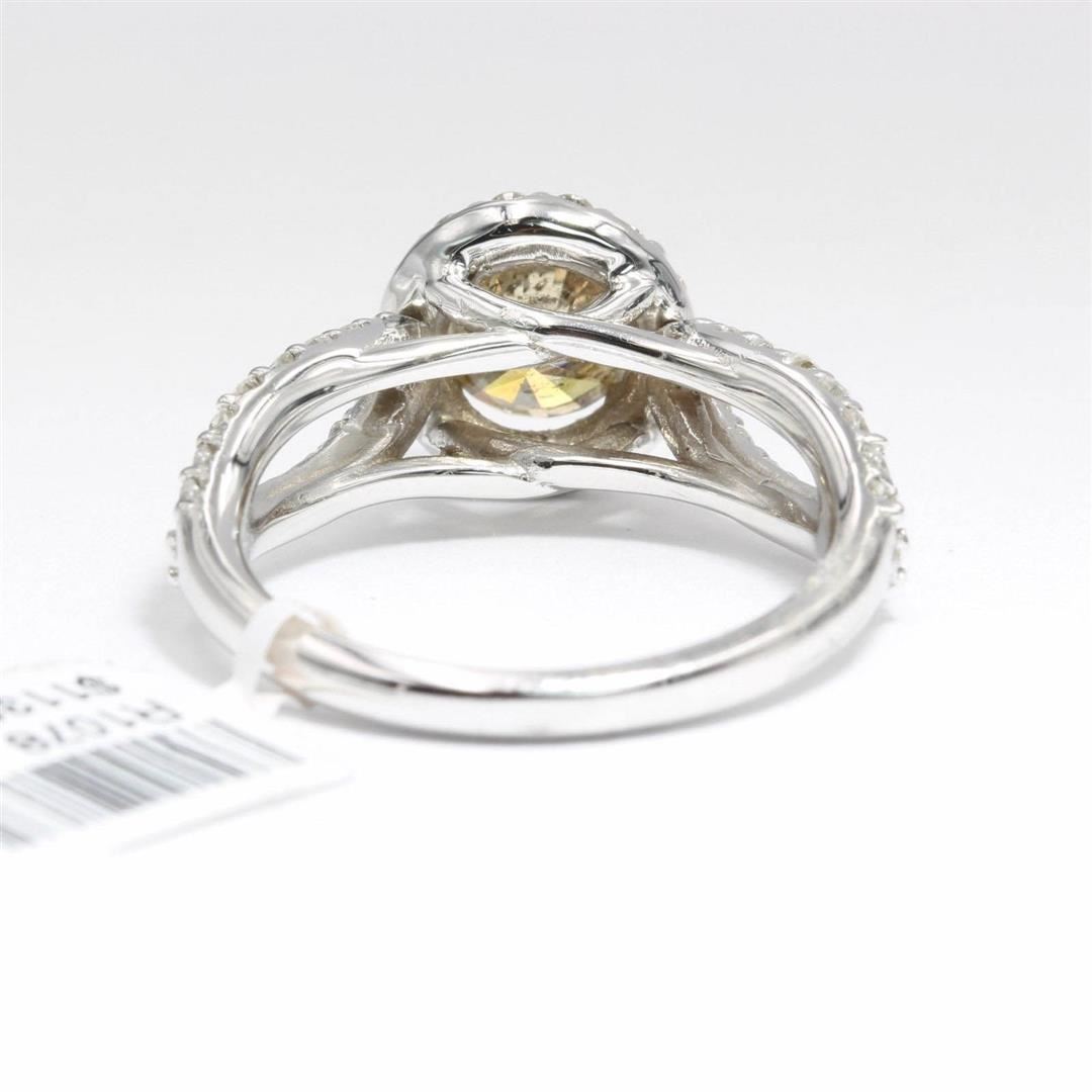 One lady's wedding ring featuring: 14KT white gold weighing 4.95 grams containing one center diamond with a weight of 1.04ct and 46 side diamonds weighing 0.99ctw. The center diamond is round brilliant cut with SI2 clarity, fancy brown color and excellent