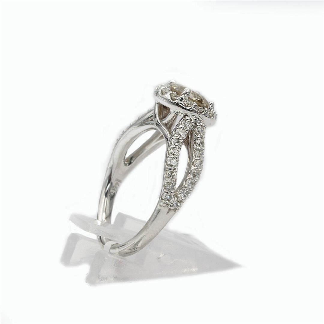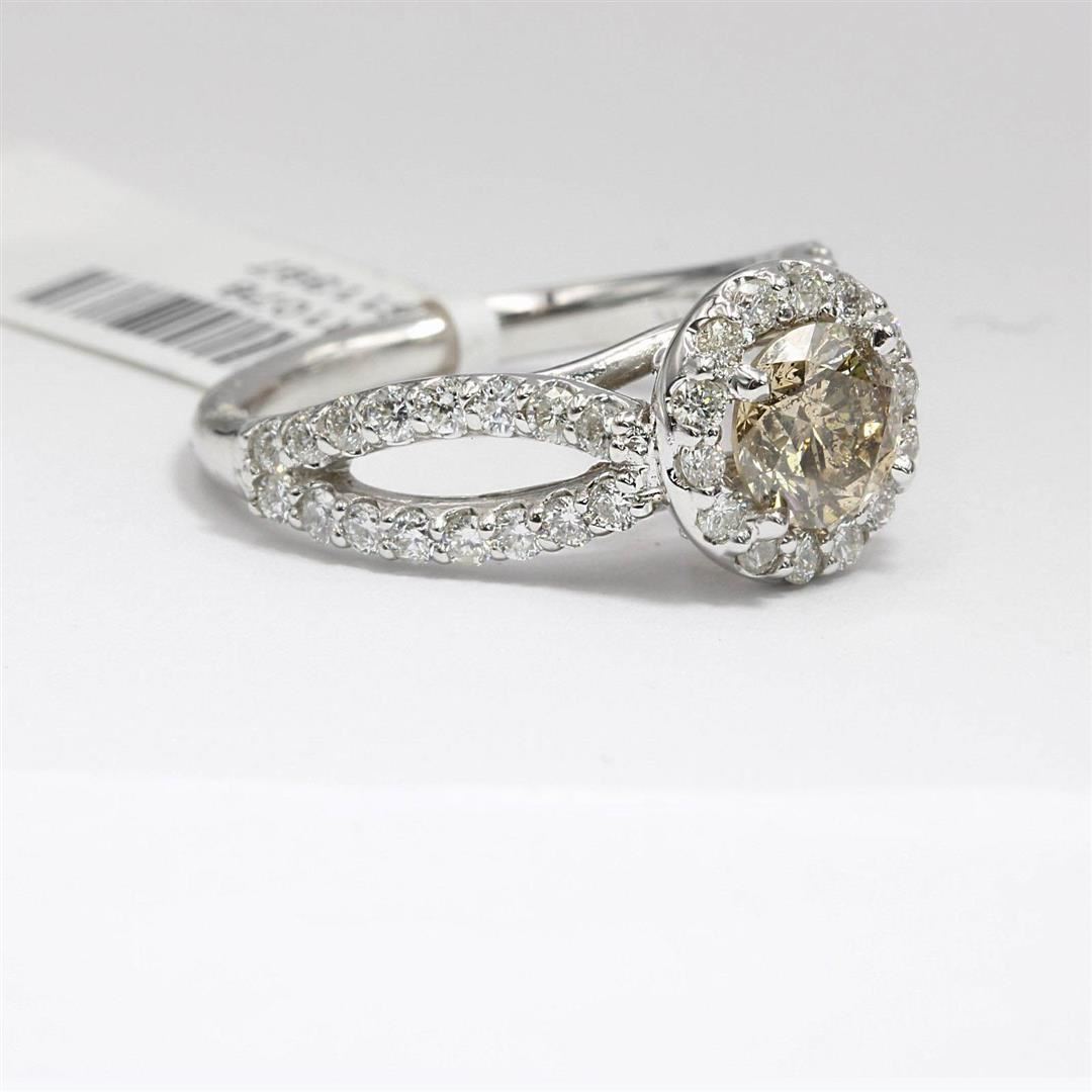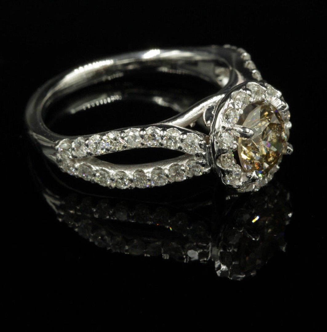 One lady's wedding ring featuring: 14KT white gold weighing 4.95 grams containing one center diamond with a weight of 1.04ct and 46 side diamonds weighing 0.99ctw. The center diamond is round brilliant cut with SI2 clarity, fancy brown color and excellent