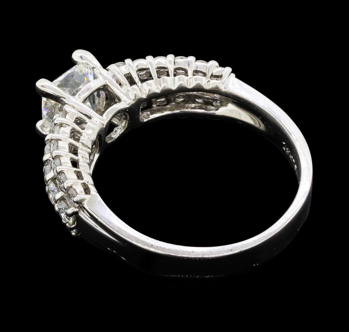 One electronically tested 18KT white gold lady's cast wedding ring with a three row cathedral shank with a bright polish finish. The featured lady's ring has a shank measuring 3.13 millimeters wide. Identified with markings of '18K 750'. Condition is new, good workmanship. Containing: One prong set cushion cut diamond, measuring 6.05 x 5.80 x 3.91mm (depth est.) approximate weight of 1.01ct. Graded loose prior to setting in the EGL Laboratory, Report #US81496232D. Color D Clarity SI-2 Cut Good Ten prong set round brilliant cut diamonds, measuring 2.30 - 2.20 x 1.40mm (depth est.) approximate total weight of 10 Stones = 0.44ct. Graded in the setting. Color G - H Clarity VS-1 to VS-2 Cut Excellent Twenty-Four prong set round brilliant cut diamonds, measuring 1.90 - 1.80 x 1.15mm (depth est.) approximate total weight of 24 Stones = 0.58ct. Graded in the setting. Color G - H Clarity VS-1 to VS-2 Cut Excellent. Total Weight of Diamonds 2.03ct.. Total Weight of Ring 5.60gm GAS Appraised at $14385.00. GAS Appraised at $14,385.00.