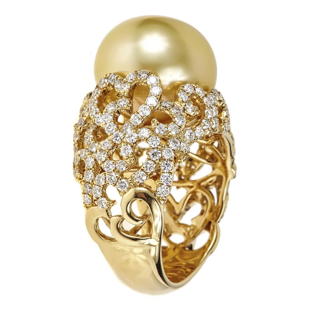 One lady's ring featuring: 18KT yellow gold weighing 11.12 grams containing one pearl and diamonds weighing 2.03ctw.