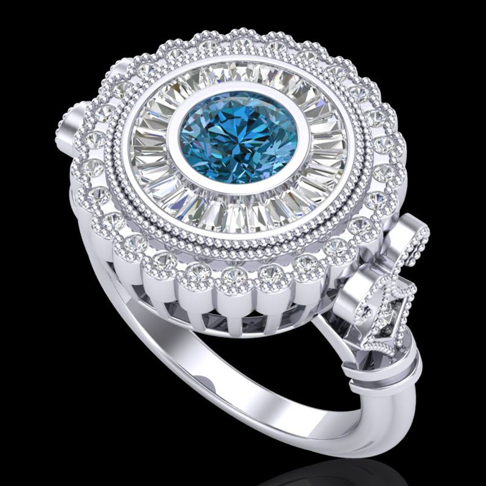 REF-245A5N - SKU: 37901 ---- 2.03 ctw Fancy Intense Blue Diamond Art Deco Ring 18k White Gold
