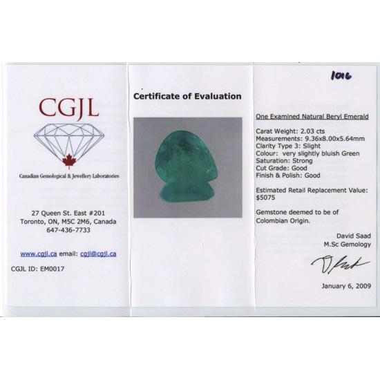 Fabulous stone hard to capture in photos due to depth of color; with gemologist appraisal card; typical emerald clarity SI2 and well colored
