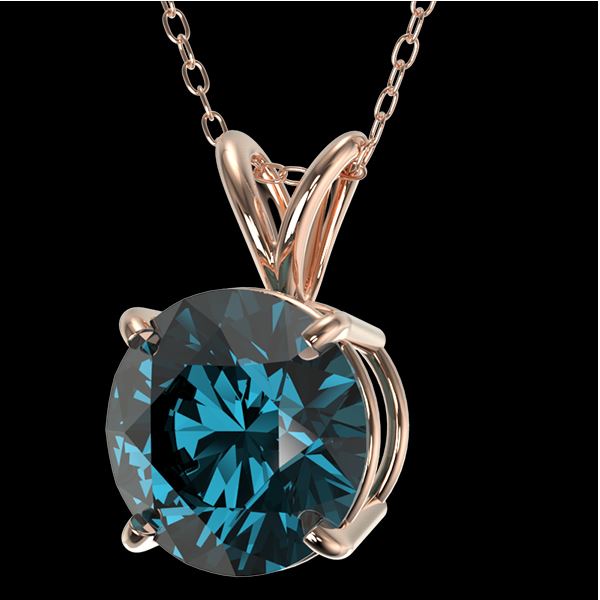 REF-343A2X -36815 ---- 2.04 CTW Certified Intense Blue SI Diamond Solitaire Necklace 10K Rose Gold ---- Luxury Designer Brand Necklace Appraised at $27,450 Certificate Number US36815 10k Rose gold, Necklace Size is 16 Incehs, Necklace measuring approx. Uniform, weighing in total approx. 2 grams. Made in the USA and is stamped 10k, Main stone 2.04 carat total weight containing 1 pieces of Intense Fancy Blue color with SI quality Round shape cut Diamond , Stone #2 carat total weight containing pieces of color with quality shape cut