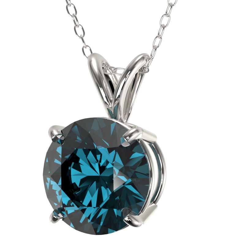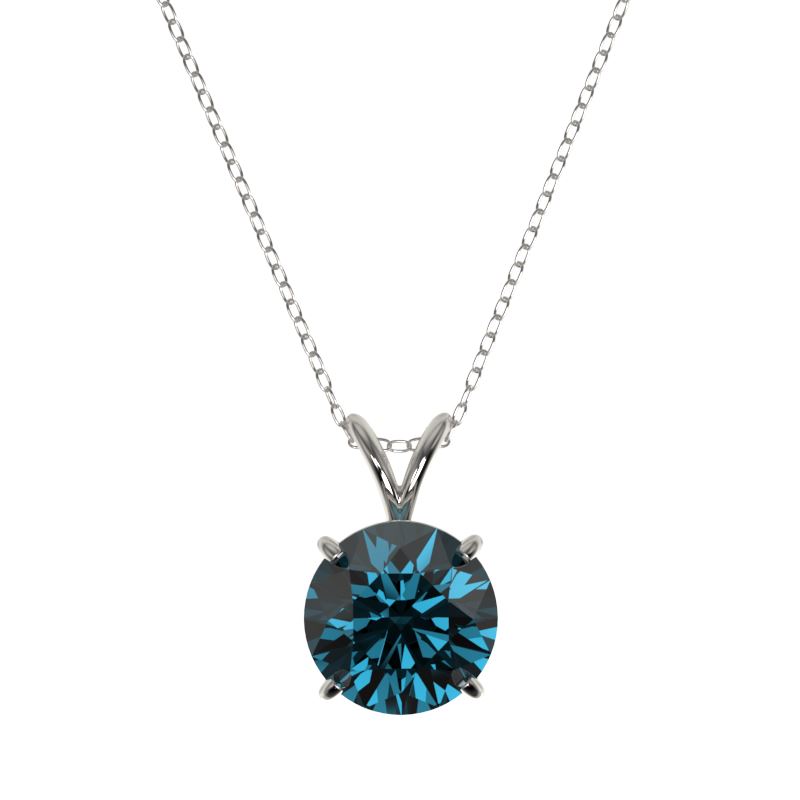 36814 - REF-343W2H ---- 2.04 CTW Certified Intense Blue SI Diamond Solitaire Necklace 10K White Gold ---- Luxury Designer Brand Necklace Appraised at $27,450 Certificate Number US36814 10k White gold, Necklace Size is 16 Incehs, Necklace measuring approx. Uniform, weighing in total approx. 2 grams. Made in the USA and is stamped 10k, Main stone 2.04 carat total weight containing 1 pieces of Intense Fancy Blue color with SI quality Round shape cut Diamond , Stone #2 carat total weight containing pieces of color with quality shape cut