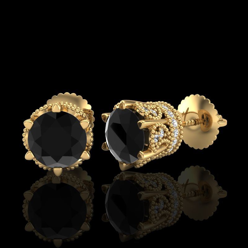REF-89W3F -38096 ---- 2.04 CTW Fancy Black Diamond Solitaire Art Deco Stud Earrings 18K Yellow Gold ---- Luxury Designer Brand Earring Appraised at $5,400 Certificate Number US38096 18k Yellow gold, Earring Size is Larger, Earring measuring approx. Uniform, weighing in total approx. 3.7 grams. Made in the USA and is stamped 18k, Main stone 1.54 carat total weight containing 2 pieces of Black Opaque color with VS quality Round shape cut Diamond , Stone #2 0.5 carat total weight containing 56 pieces of H-I color with VS/SI quality Round shape cut Diamond
