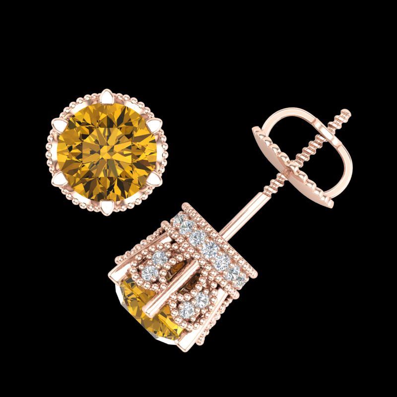 REF-209M3H -38100 ---- 2.04 CTW Intense Fancy Yellow Diamond Art Deco Stud Earrings 18K Rose Gold ---- Luxury Designer Brand Earring Appraised at $13,800 Certificate Number US38100 18k Rose gold, Earring Size is Larger, Earring measuring approx. Uniform, weighing in total approx. 3.7 grams. Made in the USA and is stamped 18k, Main stone 1.54 carat total weight containing 2 pieces of Intense Fancy Yellow color with SI quality Round shape cut Diamond , Stone #2 0.5 carat total weight containing 56 pieces of H-I color with VS/SI quality Round shape cut Diamond