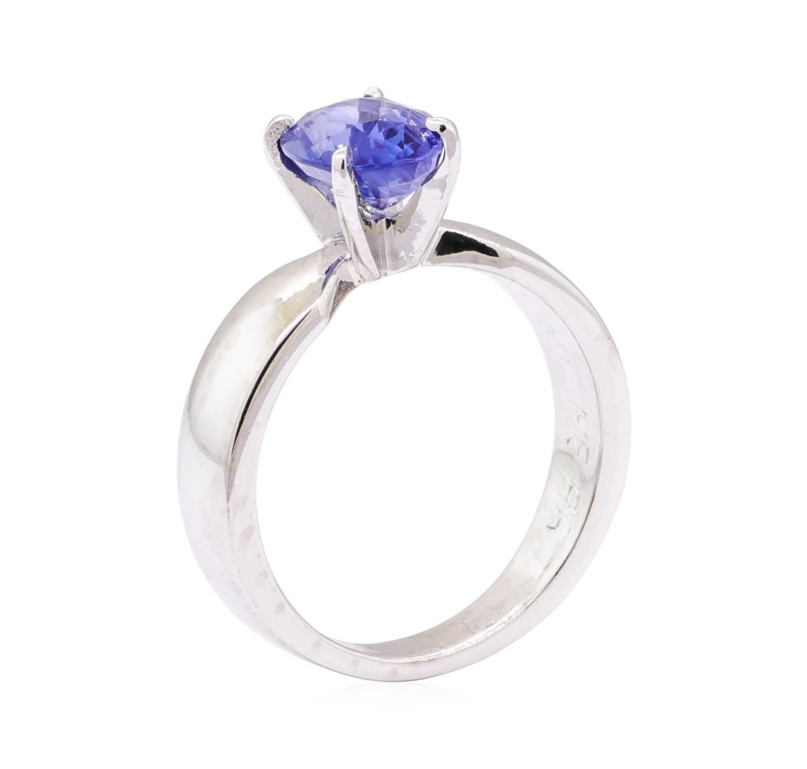 One ring featuring: platinum weighing 8.0 grams containing one oval cut blue sapphire weighing 2.04ct. The ring has a pinched solitaire motif.