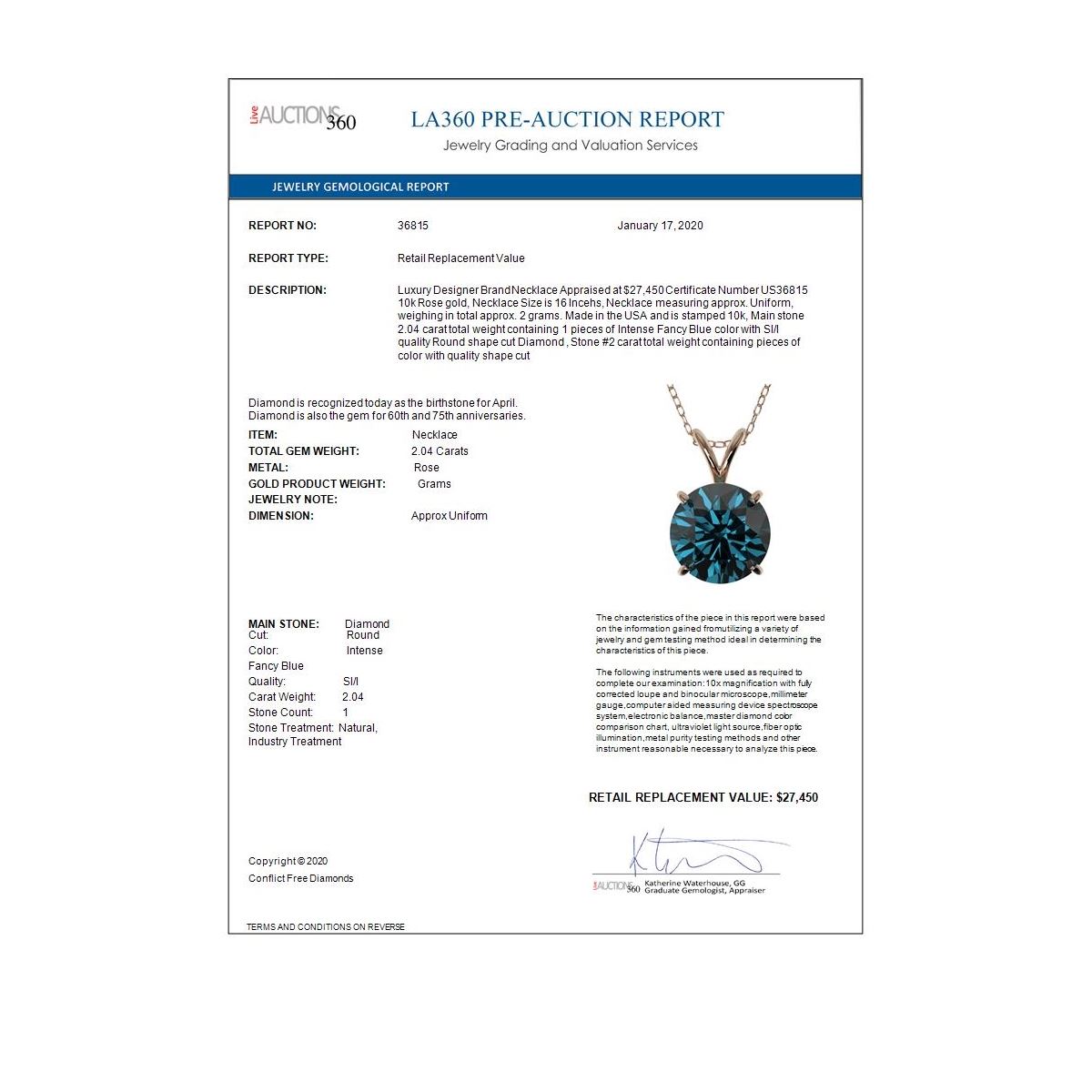 REF-280W8H - SKU: 36815 ---- 2.04 ctw Certified Intense Blue Diamond Necklace 10k Rose Gold