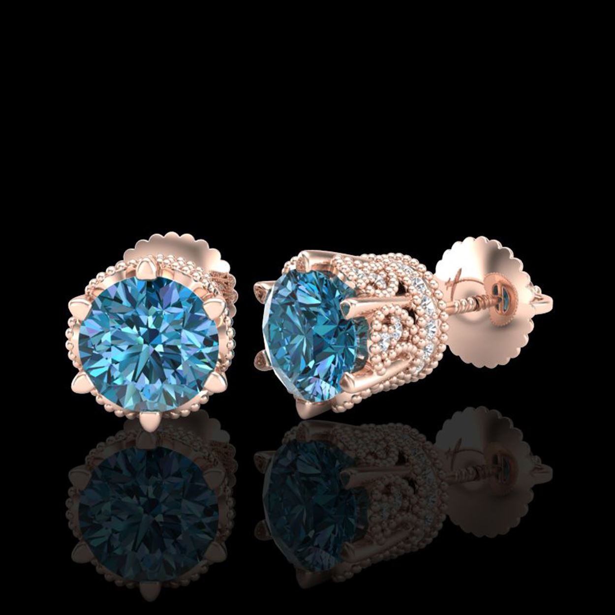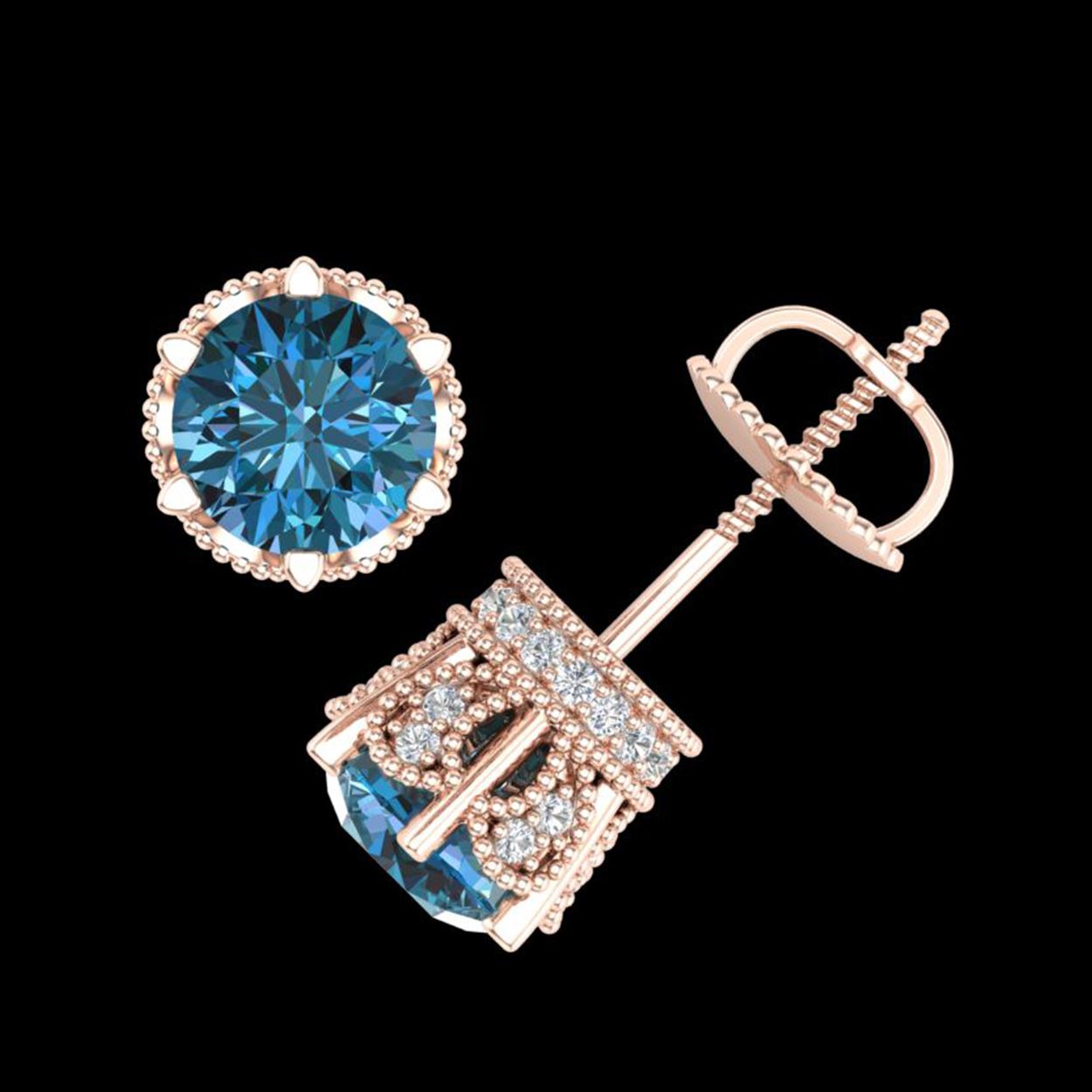 2.04 ctw Fancy Intense Blue Diamond Art Deco Earrings 18K Rose Gold