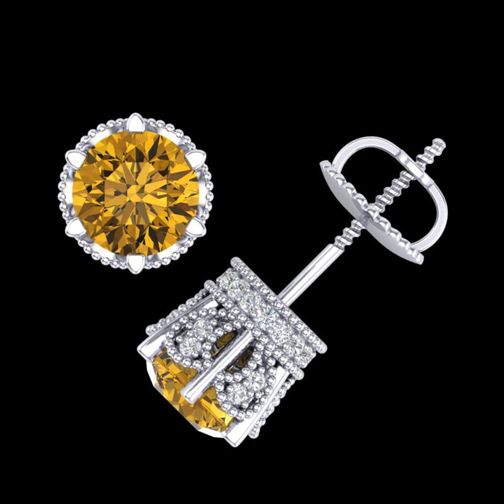 REF-290G9W - SKU: 38099 ---- 2.04 ctw Intense Fancy Yellow Diamond Art Deco Earrings 18k White Gold