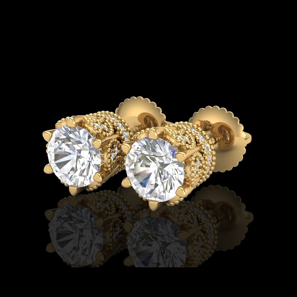 2.04 ctw VS/SI Diamond Solitaire Art Deco Stud Earrings 18K Yellow Gold