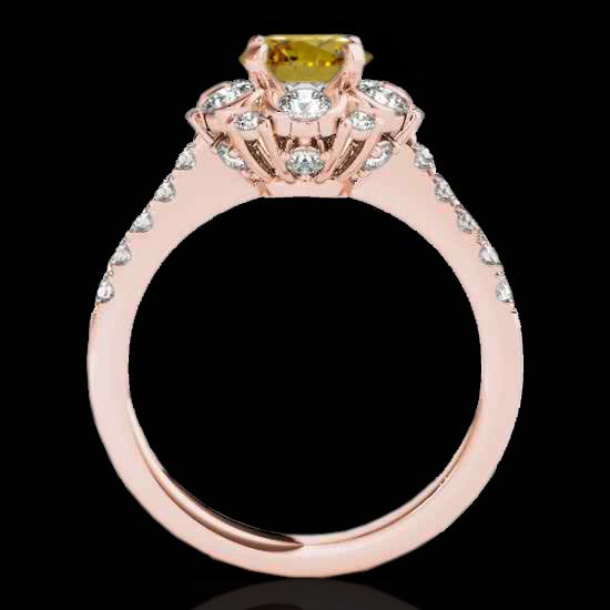 REF-245M5H -33917 ---- 2.05 CTW Certified Si/I Fancy Intense Yellow Diamond Solitaire Halo Ring 10K Rose Gold ---- Luxury Designer Brand Ring Appraised at $16,200 Certificate Number US33917 10k Rose gold, Ring Size is 7, Ring measuring approx. Uniform, weighing in total approx. 5.3 grams. Made in the USA and is stamped 10k, Main stone 1 carat total weight containing 1 pieces of Intense Fancy Yellow color with SI quality Round shape cut Diamond , Stone #2 1.05 carat total weight containing 28 pieces of H-I color with VS/SI quality Round shape cut Diamond
