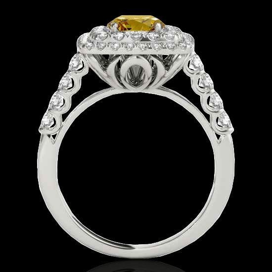 REF-225M5H -34592 ---- 2.05 CTW Certified Si/I Fancy Intense Yellow Diamond Solitaire Halo Ring 10K White Gold ---- Luxury Designer Brand Ring Appraised at $13,650 Certificate Number US34592 10k White gold, Ring Size is 7, Ring measuring approx. Uniform, weighing in total approx. 6.5 grams. Made in the USA and is stamped 10k, Main stone 1 carat total weight containing 1 pieces of Intense Fancy Yellow color with SI quality Round shape cut Diamond , Stone #2 1.05 carat total weight containing 52 pieces of H-I color with VS/SI quality Round shape cut Diamond