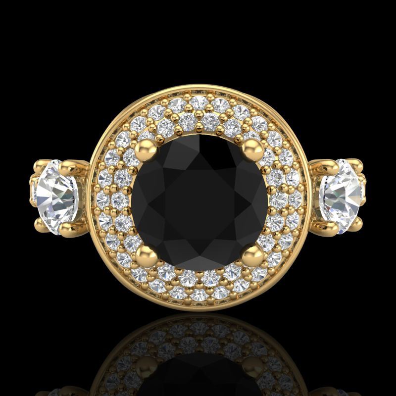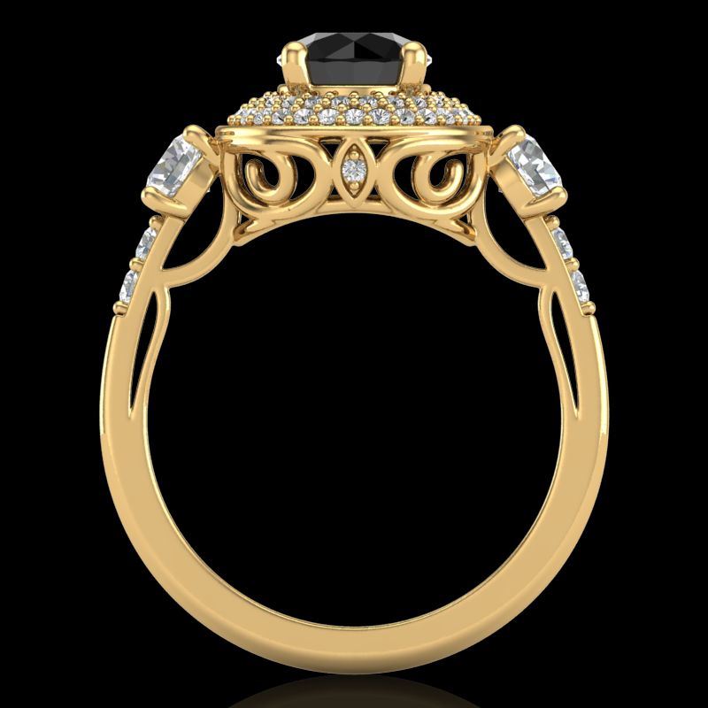 2.05 CTW Fancy Black Diamond Solitaire Art Deco 3 Stone Ring 18K Yellow Gold ---- Luxury Designer Brand 3 stone ring Appraised Retail Price at $10,900 ---- SKU Number US38145 18k Yellow gold 3 stone ring Size is 7, 3 stone ring measuring approx. Uniform, weighing in total approx. 11 grams. Made in the USA and is stamped 18k, Main stone 1.00 carat total weight containing 1 pieces of Black Opaque color with VS quality Round shape cut Diamond , Stone #2 0.5 carat total weight containing 2 pieces of H-I color with VS/SI quality Round shape cut