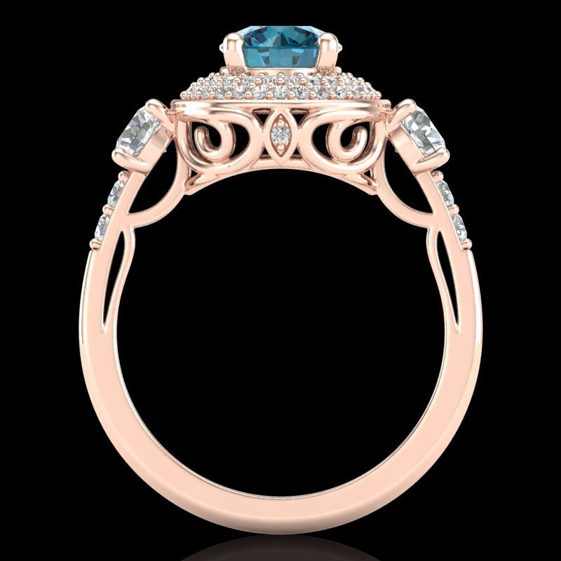 REF-300W2F -38147 ---- 2.05 CTW Intense Blue Diamond Solitaire Art Deco 3 Stone Ring 18K Rose Gold ---- Luxury Designer Brand 3 stone ring Appraised at $19,800 Certificate Number US38147 18k Rose gold, 3 stone ring Size is 7, 3 stone ring measuring approx. Uniform, weighing in total approx. 11 grams. Made in the USA and is stamped 18k, Main stone 1 carat total weight containing 1 pieces of Intense Fancy Blue color with SI quality Round shape cut Diamond , Stone #2 0.5 carat total weight containing 2 pieces of H-I color with VS/SI quality Round shape cut Diamond , Stone #3 0.55 carat total weight containing 56 pieces of G-H color with VS/SI quality Round shape cut Diamond