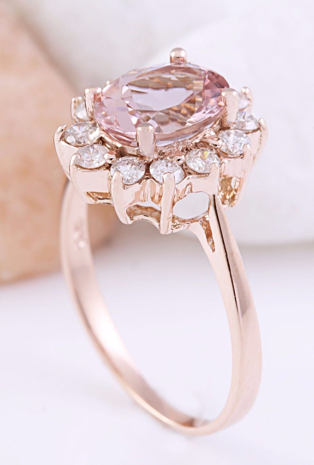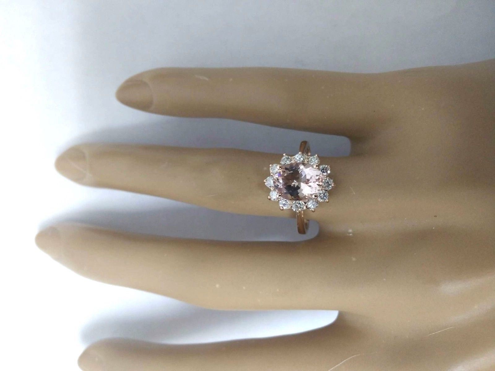 2.05 Carat Natural Morganite 18K Solid Rose Gold Diamond Ring