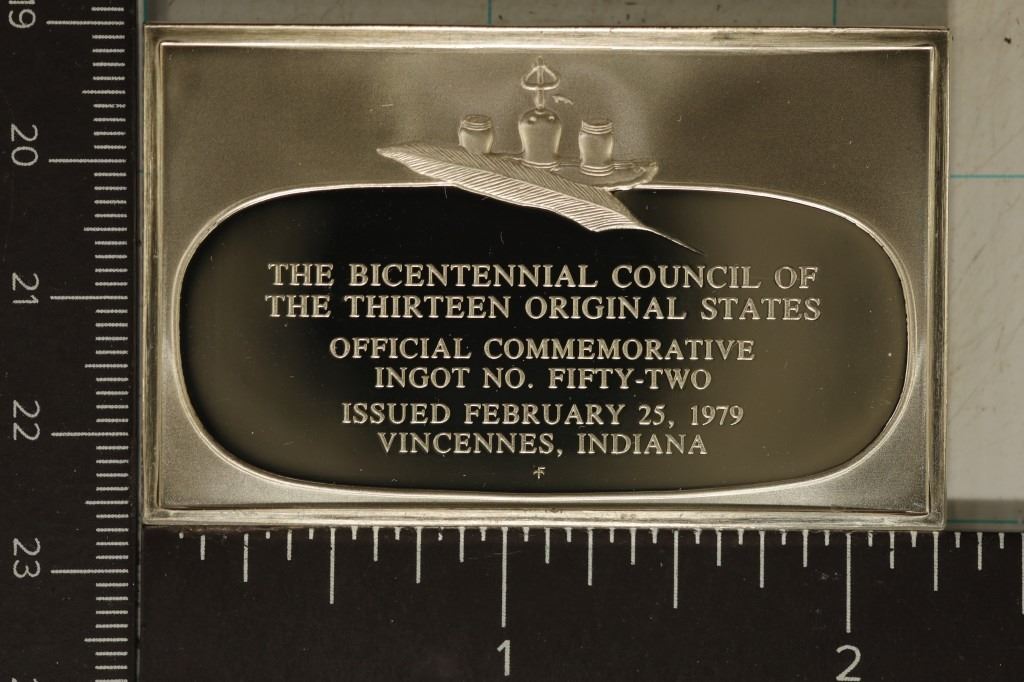 OF THE 13 ORIGINAL STATES INGOT #52 FEBRUARY 25TH, 1979 VINCENNES, INDIANA, EDGE MARKED