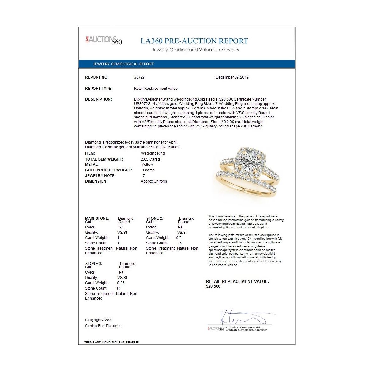 REF-310R5K - SKU: 30722 ---- 2.05 ctw Certified VS/SI Diamond 2pc Wedding Set Halo 14k Yellow Gold