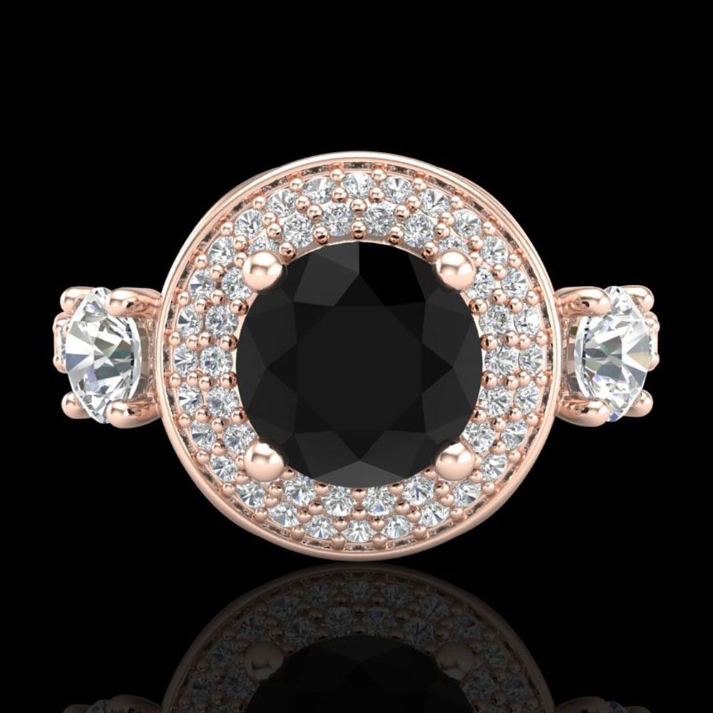 REF-180H2R - SKU: 38144 ---- 2.05 ctw Fancy Black Diamond Art Deco 3 Stone Ring 18k Rose Gold