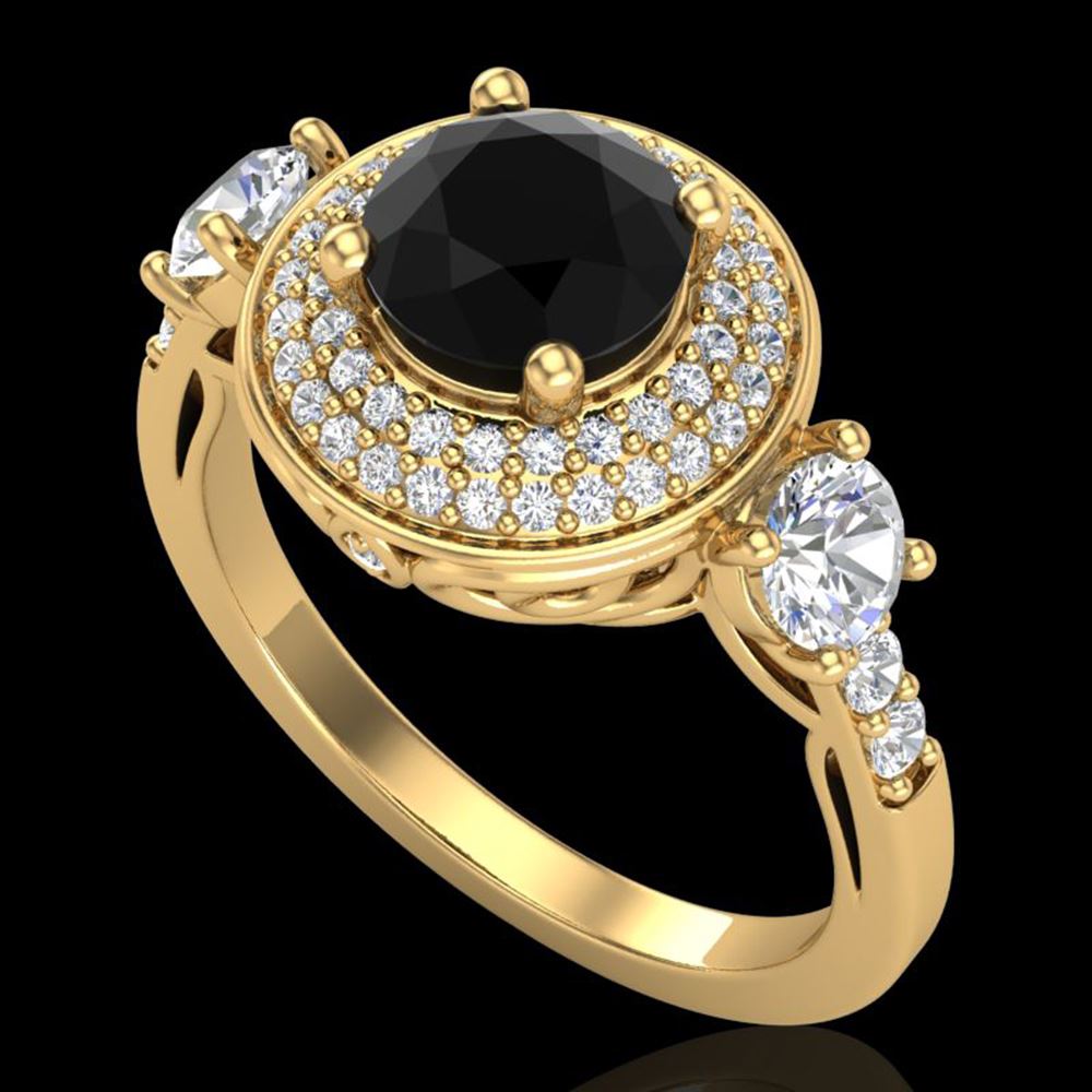 REF-180K2Y - SKU: 38145 ---- 2.05 ctw Fancy Black Diamond Art Deco 3 Stone Ring 18k Yellow Gold