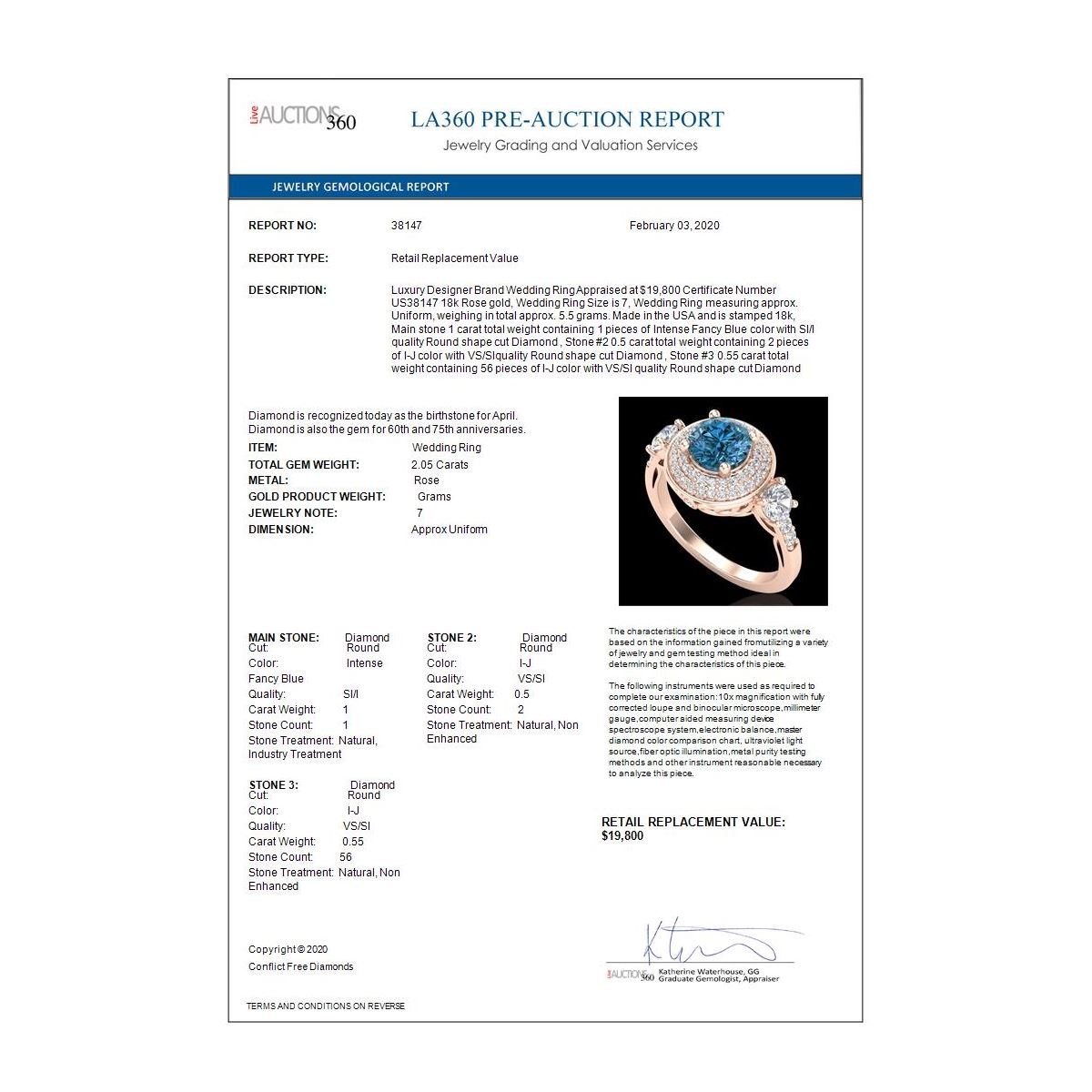 REF-300W2H - SKU: 38147 ---- 2.05 ctw Intense Blue Diamond Art Deco 3 Stone Ring 18k Rose Gold