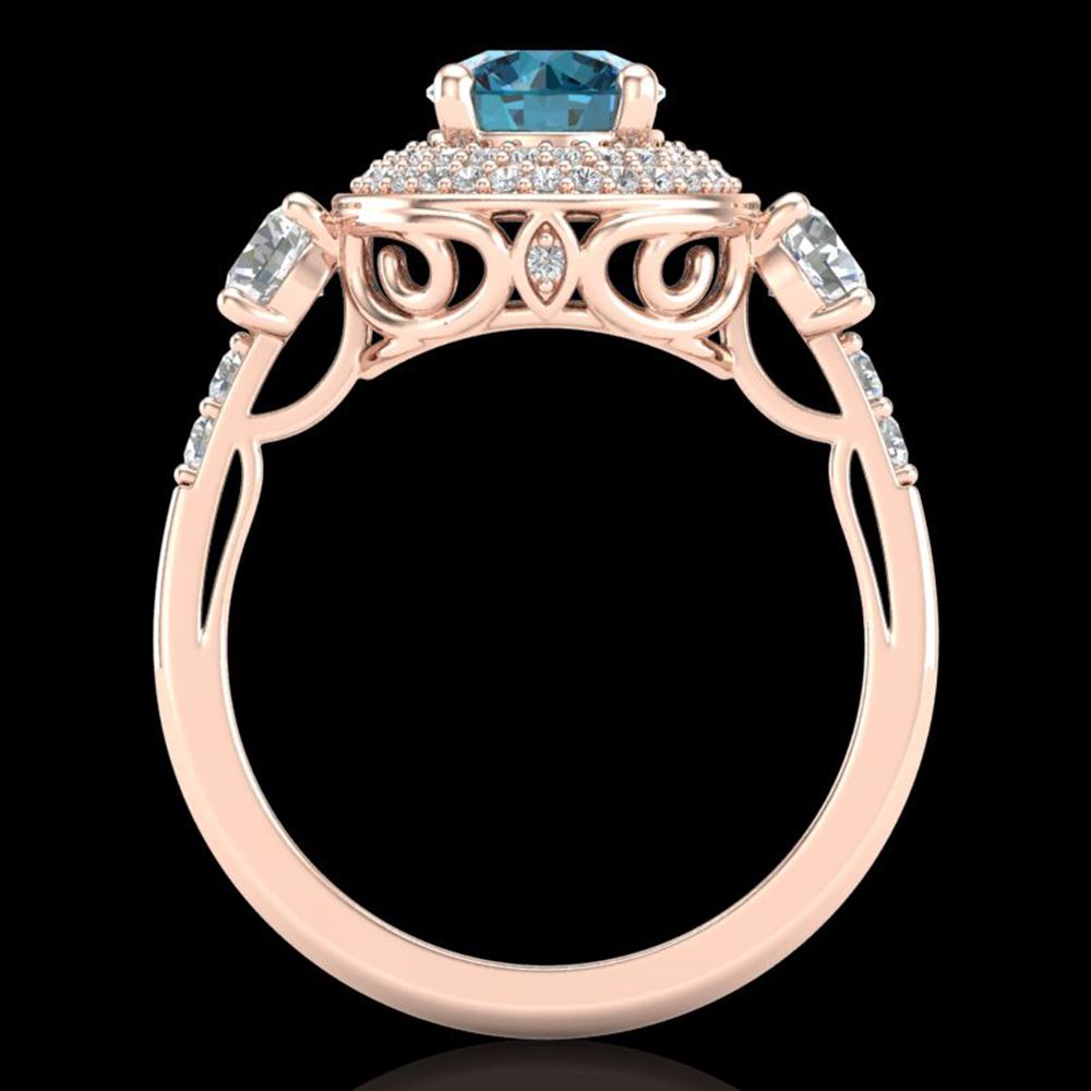 REF-300W2H - SKU: 38147 ---- 2.05 ctw Intense Blue Diamond Art Deco 3 Stone Ring 18k Rose Gold