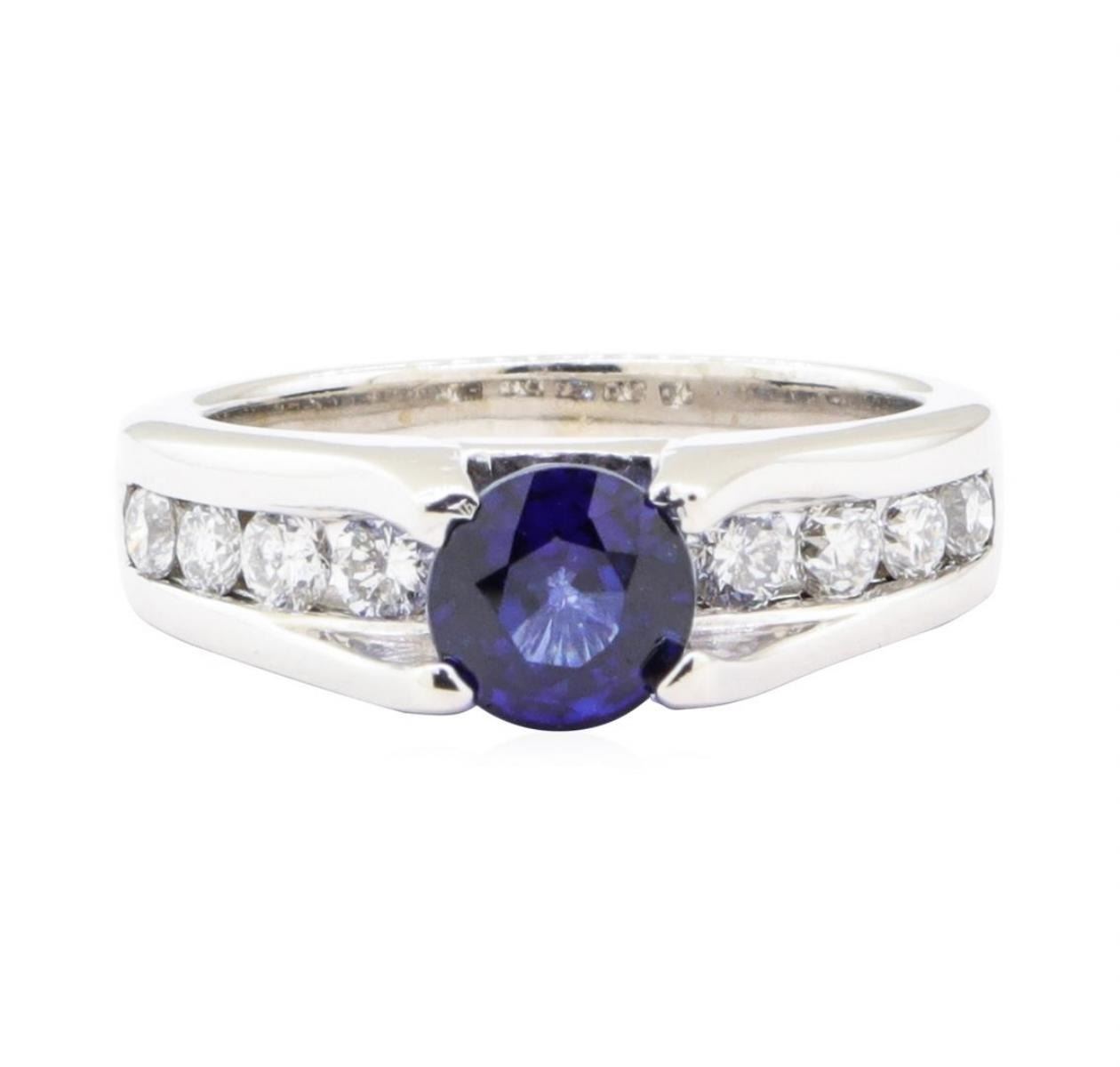 One ring featuring: 14KT white gold weighing 6.3 grams containing one sapphire weighing 1.35ct and diamonds weighing 0.70ctw.