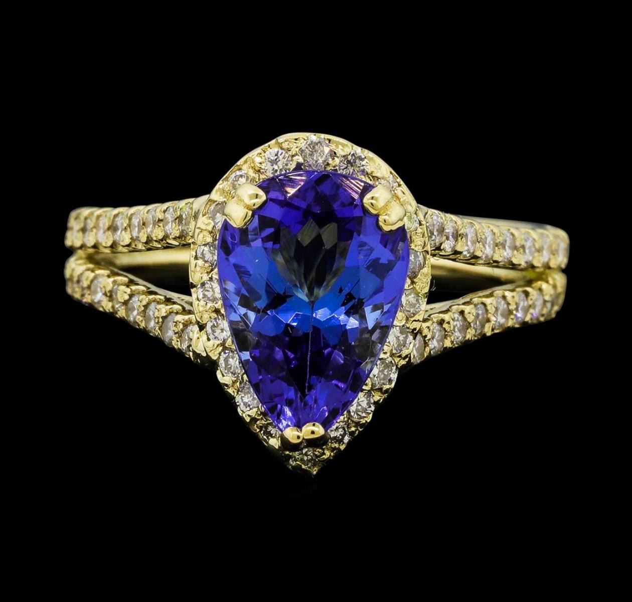 One Tanzanite and Diamond Ring including: 14KT Yellow Gold weighing a total of 4.30 grams, Tanzanite weighing a total of 2.05ct, and 60 Diamonds weighing a total of 0.50ctw.