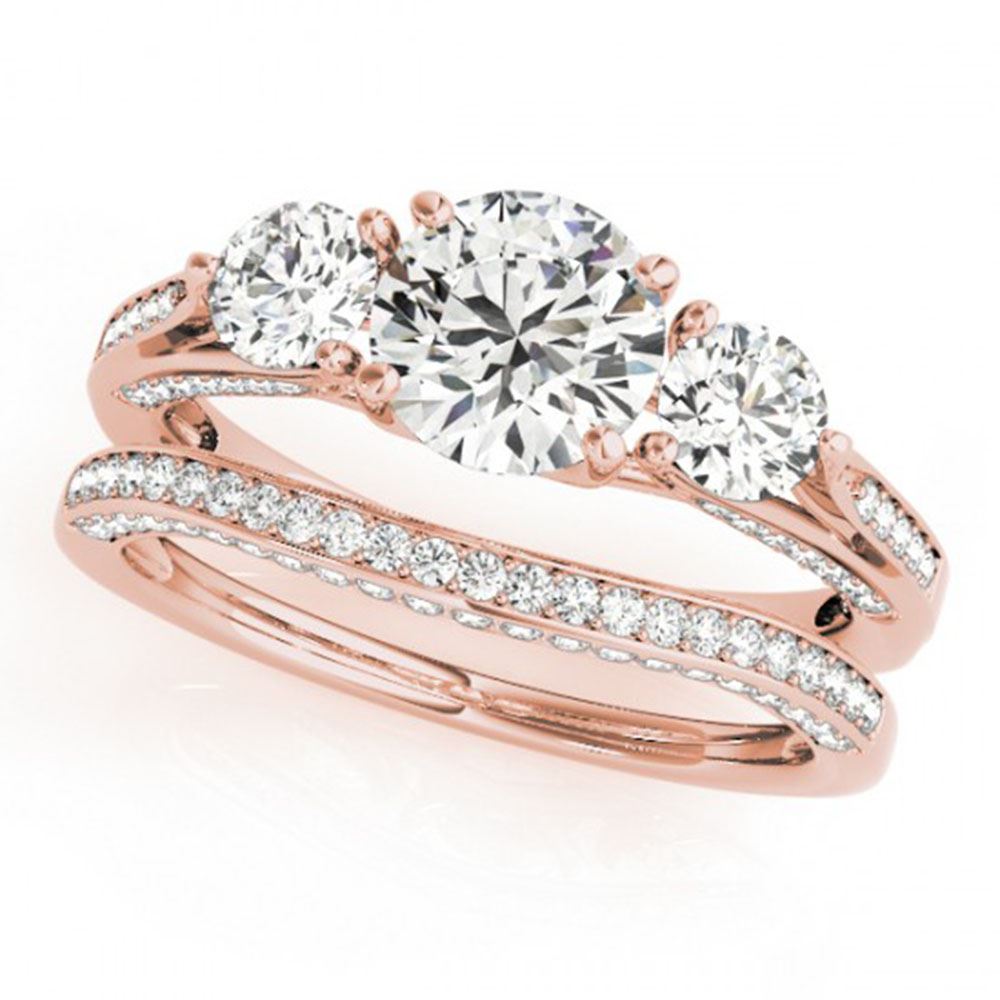 REF-335H3R - SKU: 32022 ---- 2.05 ctw VS/SI Diamond 3 Stone 2pc Wedding Set 14k Rose Gold