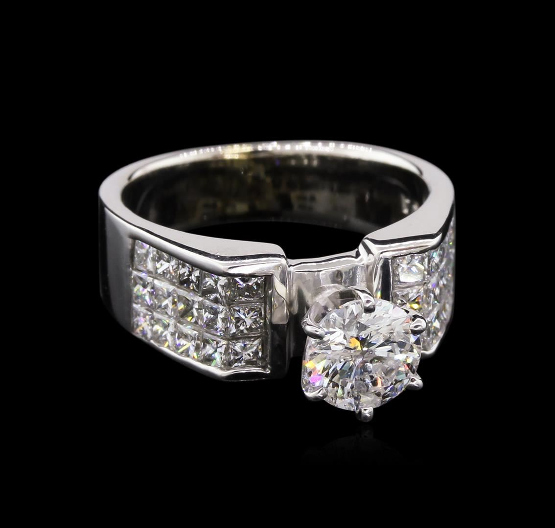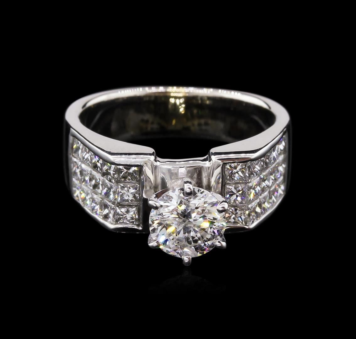 One electronically tested 18KT white gold lady's combination cast & assembled wedding ring with a bright polish with milgrain detailing finish. The featured lady's ring has a shank measuring 4.60 millimeters wide. Identified with markings of "18K". Condition is new, good workmanship. Containing: One prong set round brilliant cut diamond, measuring 6.15 - 6.12 x 4.30mm (depth est.) approximate weight of 1.00ct. Graded in the setting. Clarity: I-1. Color: Good Thirty invisible set princess cut diamonds, measuring 1.85 x 1.80 x 1.35mm (depth est.) approximate total weight of 30 Stones = 1.05ct. Graded in the setting. Clarity: VS-1 to VS-2. Color: G - Very Good. Total Weight of Diamonds 2.05ct. Total Weight of Ring 6.80gm GAS Appraised at $13,060.00.
