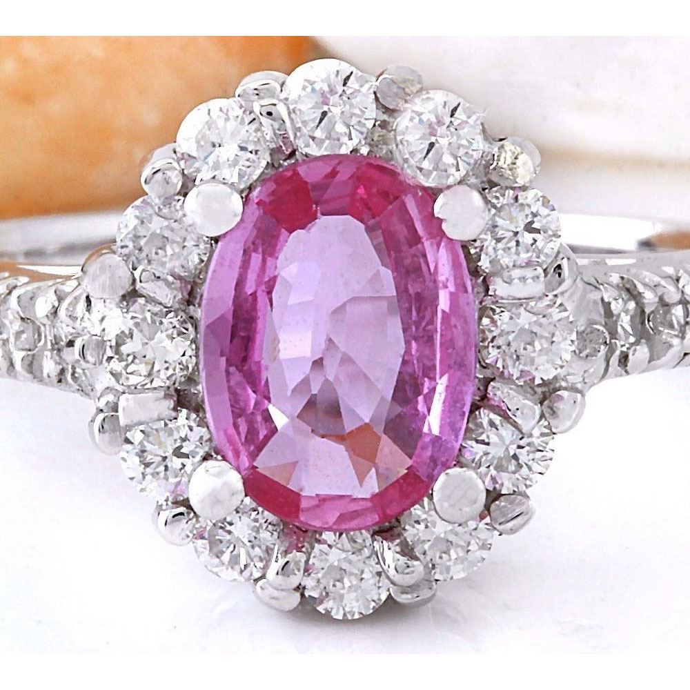2.06 Carat Natural Sapphire 14K Solid White Gold Diamond Ring