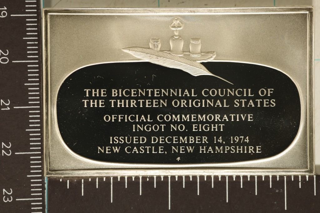 OF THE 13 ORIGINAL STATES, INGOT #8, DEC. 14TH, 1974, NEW CASTLE NEW HAMPSHIRE, EDGE MARKED