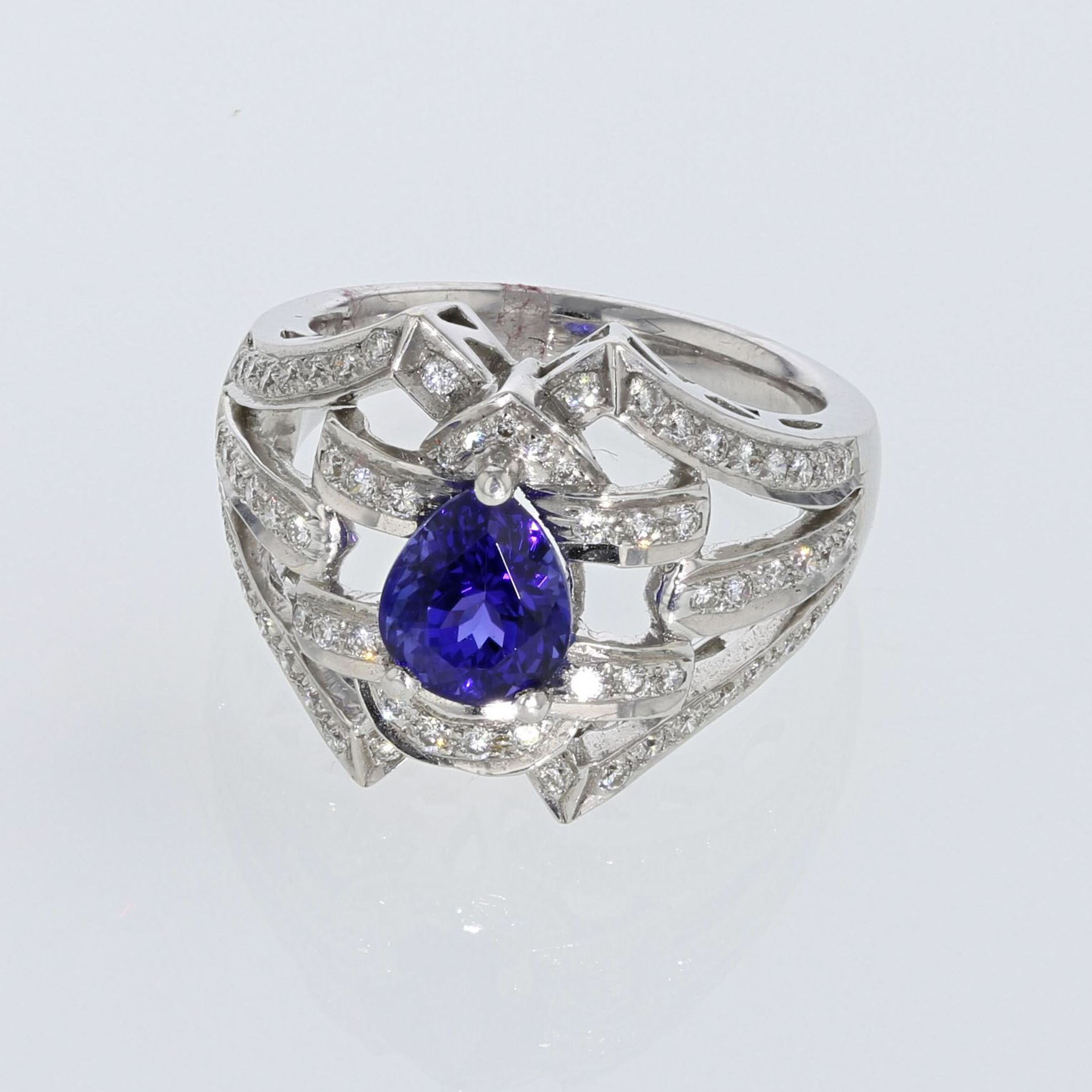 18K White Gold Ring / 2.06ct Natural Tanzanite / 0.59ct Diamonds #AV9431885