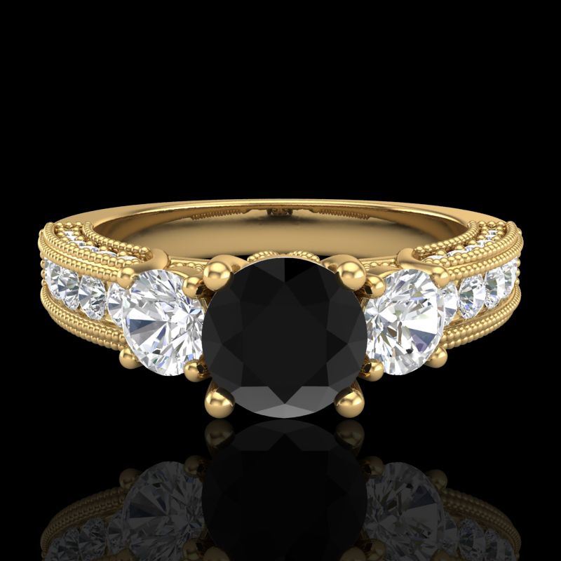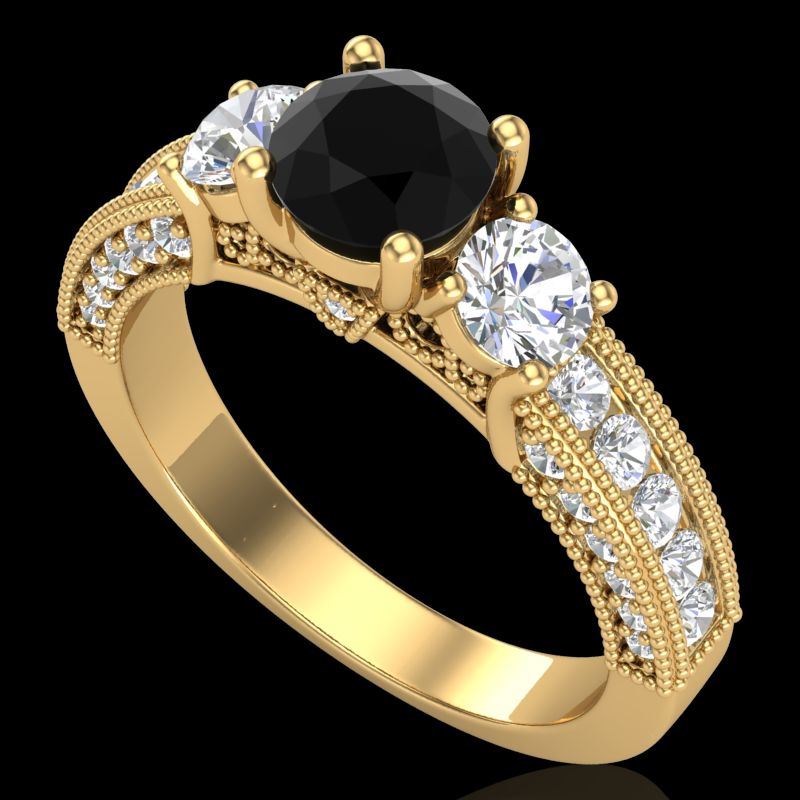 REF-200M2H -37781 ---- 2.07 CTW Fancy Black Diamond Solitaire Art Deco 3 Stone Ring 18K Yellow Gold ---- Luxury Designer Brand 3 stone ring Appraised at $12,100 Certificate Number US37781 18k Yellow gold, 3 stone ring Size is 7, 3 stone ring measuring approx. Uniform, weighing in total approx. 7 grams. Made in the USA and is stamped 18k, Main stone 0.77 carat total weight containing 1 pieces of Black Opaque color with VS quality Round shape cut Diamond , Stone #2 0.53 carat total weight containing 2 pieces of H-I color with VS/SI quality Round shape cut Diamond , Stone #3 0.77 carat total weight containing 36 pieces of G-H color with VS/SI quality Round shape cut Diamond