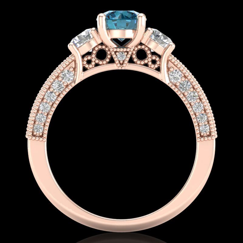 REF-254N5Y -37783 ---- 2.07 CTW Intense Blue Diamond Solitaire Art Deco 3 Stone Ring 18K Rose Gold ---- Luxury Designer Brand 3 stone ring Appraised at $16,800 Certificate Number US37783 18k Rose gold, 3 stone ring Size is 7, 3 stone ring measuring approx. Uniform, weighing in total approx. 7 grams. Made in the USA and is stamped 18k, Main stone 0.77 carat total weight containing 1 pieces of Intense Fancy Blue color with SI quality Round shape cut Diamond , Stone #2 0.53 carat total weight containing 2 pieces of H-I color with VS/SI quality Round shape cut Diamond , Stone #3 0.77 carat total weight containing 36 pieces of G-H color with VS/SI quality Round shape cut Diamond