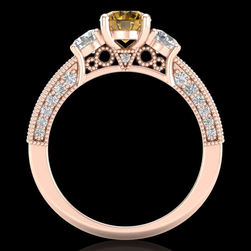 2.07 CTW Intense Fancy Yellow Diamond Art Deco 3 Stone Ring 18K Rose Gold ---- Luxury Designer Brand 3 stone ring Appraised Retail Price at $15,400 ---- SKU Number US37785 18k Rose gold 3 stone ring Size is 7, 3 stone ring measuring approx. Uniform, weighing in total approx. 11 grams. Made in the USA and is stamped 18k, Main stone 0.77 carat total weight containing 1 pieces of Intense Fancy Yellow color with SI quality Round shape cut Diamond , Stone #2 0.53 carat total weight containing 2 pieces of H-I color with VS/SI quality Round shape cut