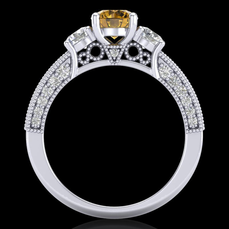 REF-254T5M -37784 ---- 2.07 CTW Intense Fancy Yellow Diamond Art Deco 3 Stone Ring 18K White Gold ---- Luxury Designer Brand 3 stone ring Appraised at $15,400 Certificate Number US37784 18k White gold, 3 stone ring Size is 7, 3 stone ring measuring approx. Uniform, weighing in total approx. 7 grams. Made in the USA and is stamped 18k, Main stone 0.77 carat total weight containing 1 pieces of Intense Fancy Yellow color with SI quality Round shape cut Diamond , Stone #2 0.53 carat total weight containing 2 pieces of H-I color with VS/SI quality Round shape cut Diamond , Stone #3 0.77 carat total weight containing 36 pieces of G-H color with VS/SI quality Round shape cut Diamond
