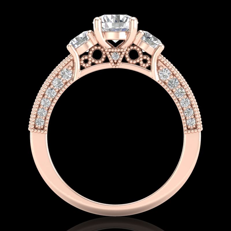 REF-270W2F -37017 ---- 2.07 CTW VS/SI Diamond Solitaire Art Deco 3 Stone Ring 18K Rose Gold ---- Luxury Designer Brand 3 stone ring Appraised at $18,000 Certificate Number US37017 18k Rose gold, 3 stone ring Size is 7, 3 stone ring measuring approx. Uniform, weighing in total approx. 8 grams. Made in the USA and is stamped 18k, Main stone 0.77 carat total weight containing 1 pieces of H-J color with VS/SI quality Round shape cut Diamond , Stone #2 0.53 carat total weight containing 2 pieces of H-I color with VS/SI quality Round shape cut Diamond , Stone #3 0.77 carat total weight containing 36 pieces of G-H color with VS/SI quality Round shape cut Diamond