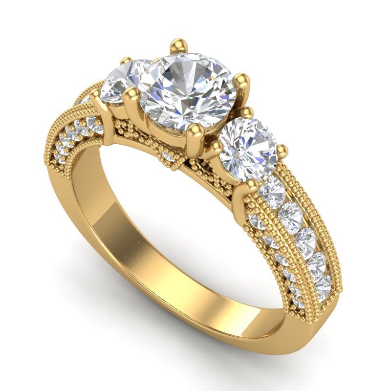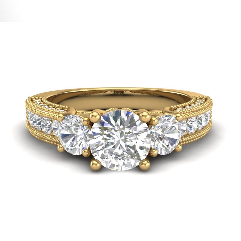 2.07 CTW VS/SI Diamond Solitaire Art Deco 3 Stone Ring 18K Yellow Gold ---- Luxury Designer Brand 3 stone ring Appraised Retail Price at $19,800 ---- SKU Number US37018 18k Yellow gold 3 stone ring Size is 7, 3 stone ring measuring approx. Uniform, weighing in total approx. 11 grams. Made in the USA and is stamped 18k, Main stone 0.77 carat total weight containing 1 pieces of H-J color with VS/SI quality Round shape cut Diamond , Stone #2 0.53 carat total weight containing 2 pieces of H-I color with VS/SI quality Round shape cut