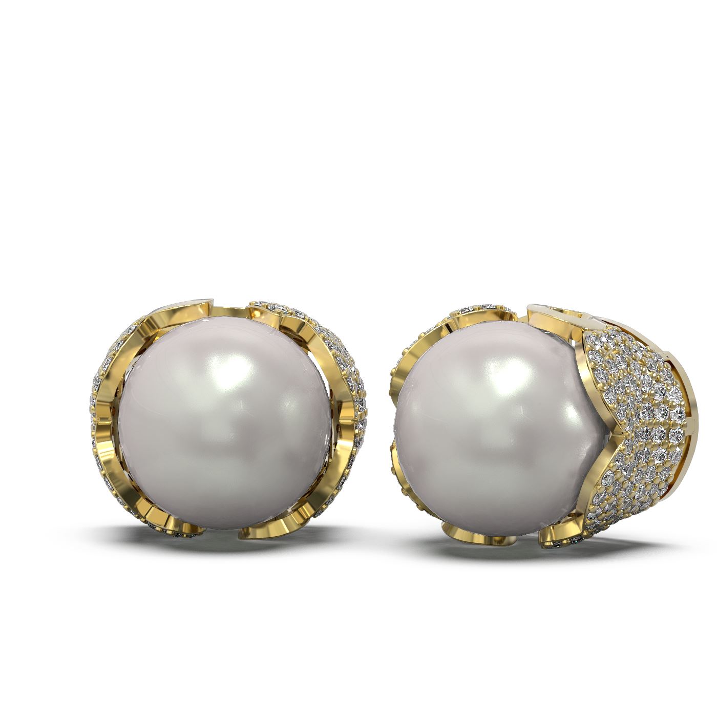 2.07 ctw Diamond and Pearl Earrings 18K Yellow Gold
