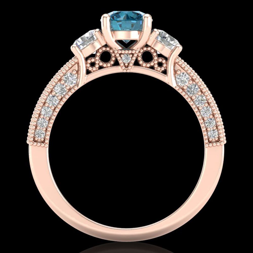 REF-254M5G - SKU: 37783 ---- 2.07 ctw Intense Blue Diamond Art Deco 3 Stone Ring 18k Rose Gold