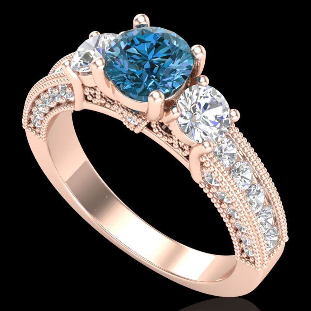 REF-254M5G - SKU: 37783 ---- 2.07 ctw Intense Blue Diamond Art Deco 3 Stone Ring 18k Rose Gold