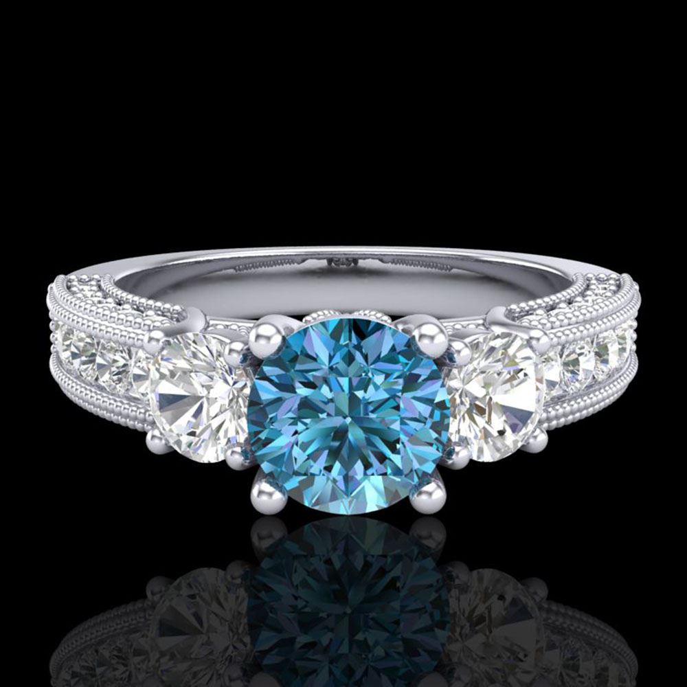 REF-254N5F - SKU: 37782 ---- 2.07 ctw Intense Blue Diamond Art Deco 3 Stone Ring 18k White Gold