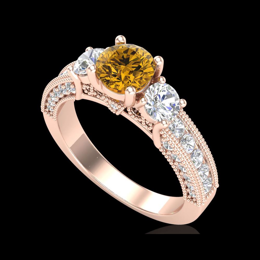2.07 ctw Intense Fancy Yellow Diamond Art Deco Ring 18K Rose Gold