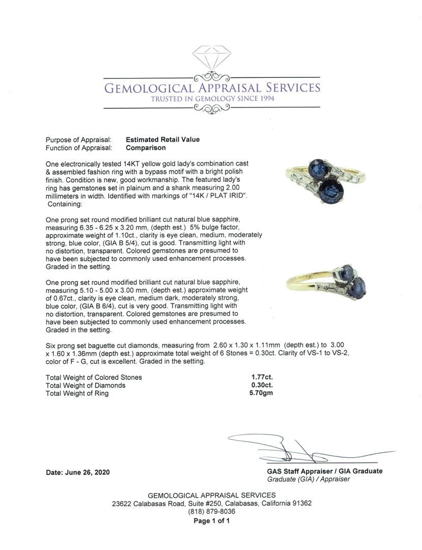 One electronically tested 14KT yellow gold lady's combination cast & assembled fashion ring with a bypass motif with a bright polish finish. The featured lady's ring has gemstones set in plainum and a shank measuring 2.00 millimeters in width. Identified