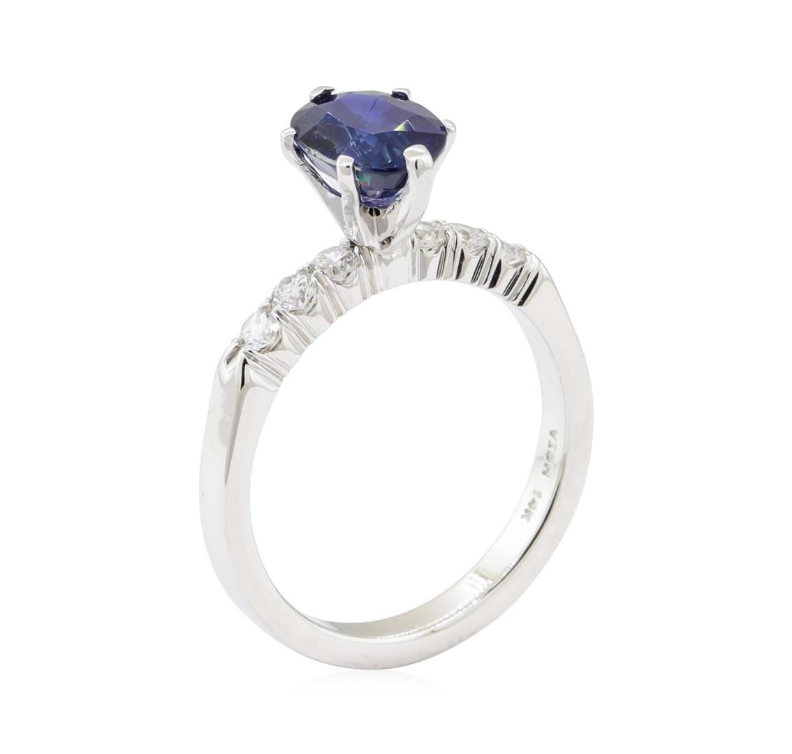 One ring featuring: 14KT white gold weighing 3.8 grams containing one oval sapphire weighing 1.77ct and diamonds weighing 0.30ctw.
