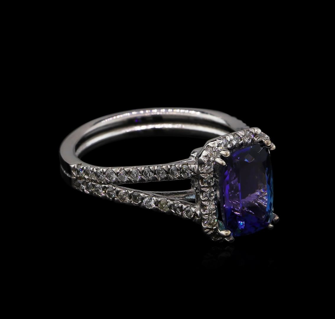 One ring featuring: 14KT white gold weighing 4.29 grams containing one tanzanite with a total weight of 2.07ct and side diamonds with a total weight of 0.48ct.